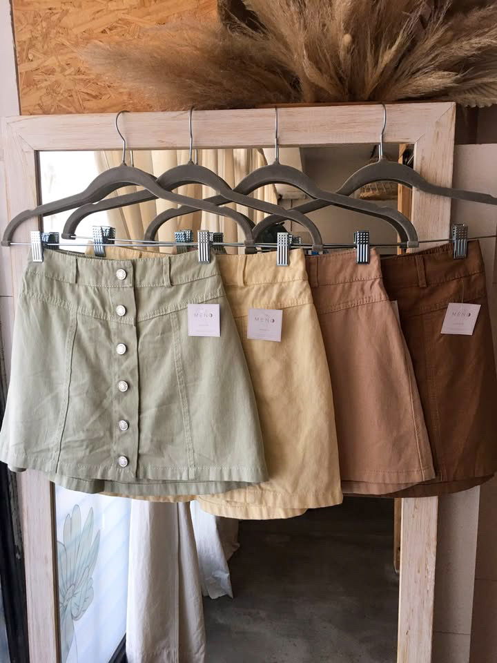 Pollera con botones, confeccionado en gabardina fina.
